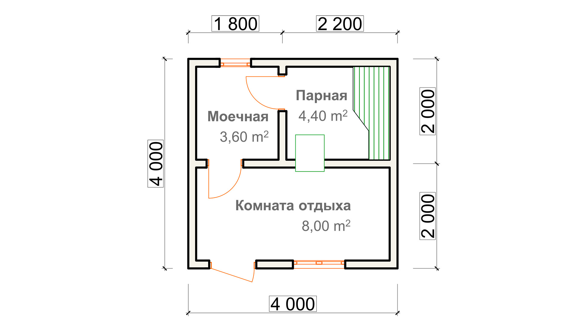 Отличная жаркая небольшая банька / Размеры: 4х4 м