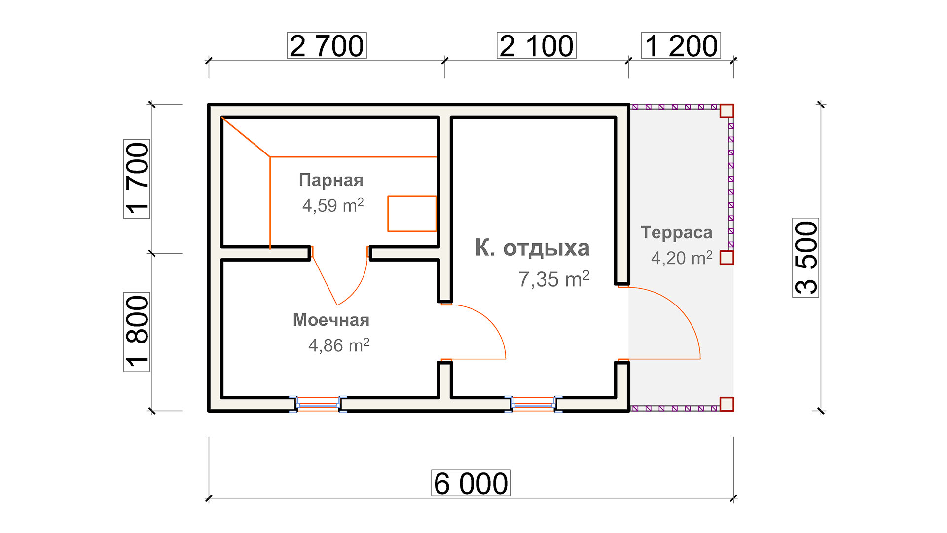 Отличная небольшая банька с малой террасой / Размеры: 3,5х6 м