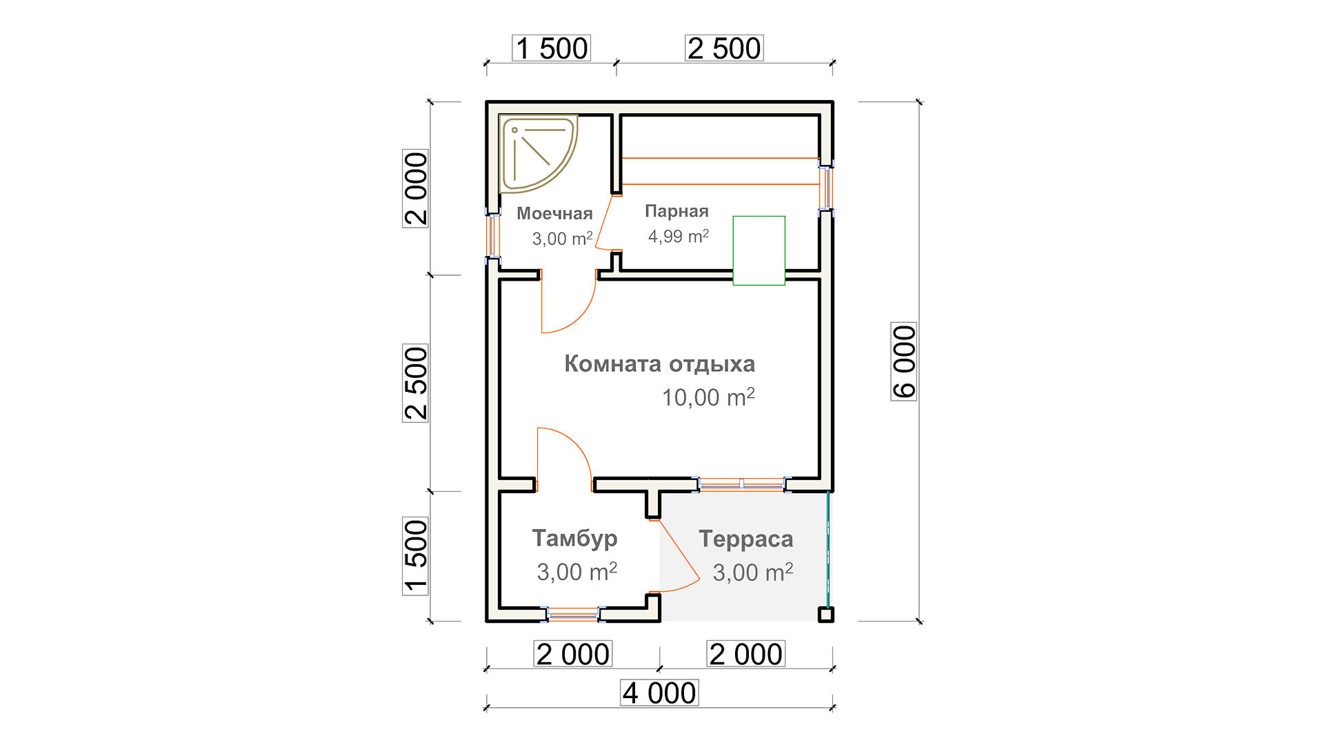 Отличная небольшая банька с малой террасой / Размеры: 4х6 м